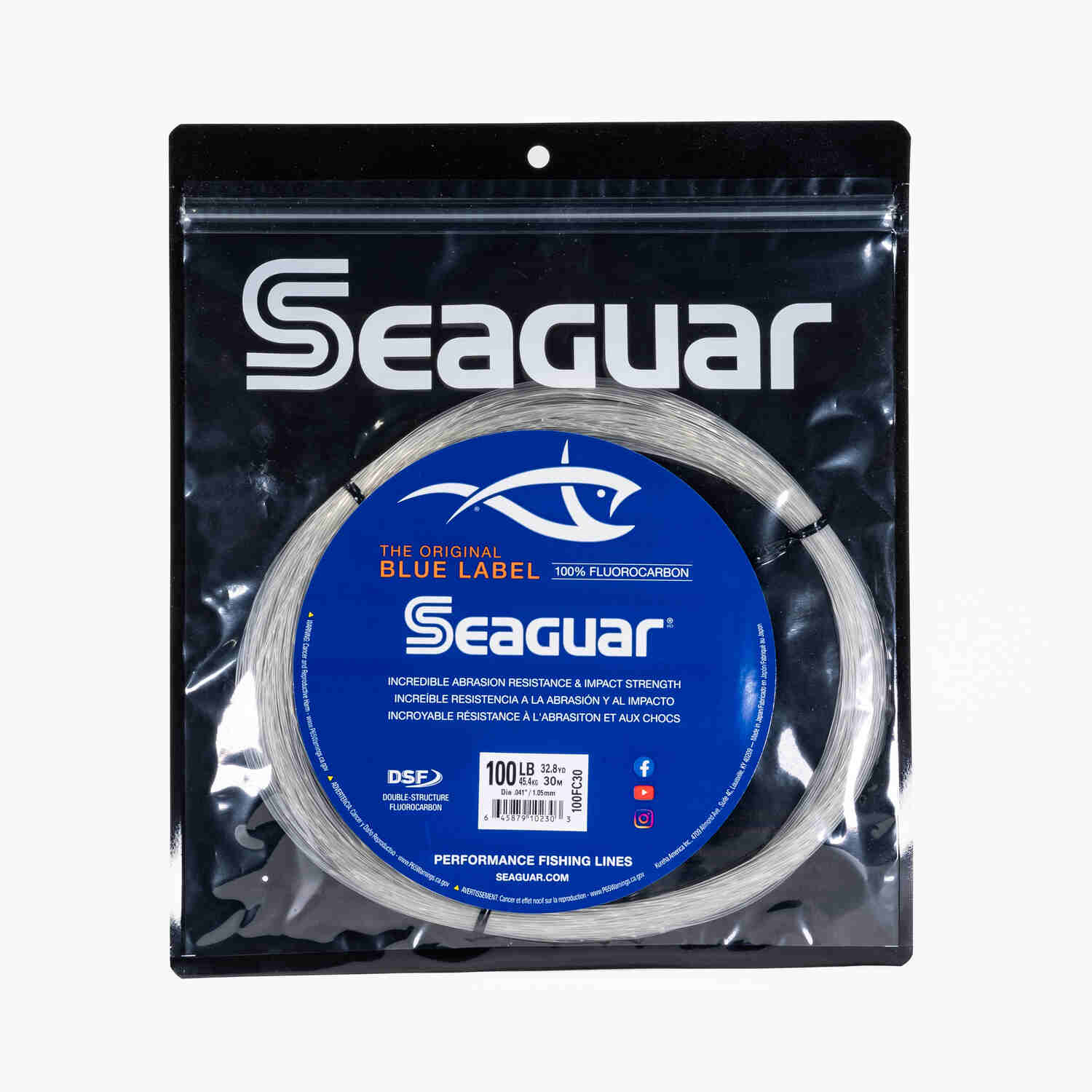 Seaguar Blue Label Fluorocarbon Leader is perfect for presenting bait to fish without them seeing your line. Seaguar Fluorocarobon is very strong with a very thin diameter. It is abrasion resistant and has best in class knot strength. Seaguar Blue Label Fluorocarbon Leader is invisible to fish when underwater. It is constructed using Seaguar's Double Structure Technology, which binds two custom resins to form a single line that is soft, sensitive and very strong! On your next fishing trip, bring some Seaguar Blue Label Fluorocarbon Leader. You will love it!